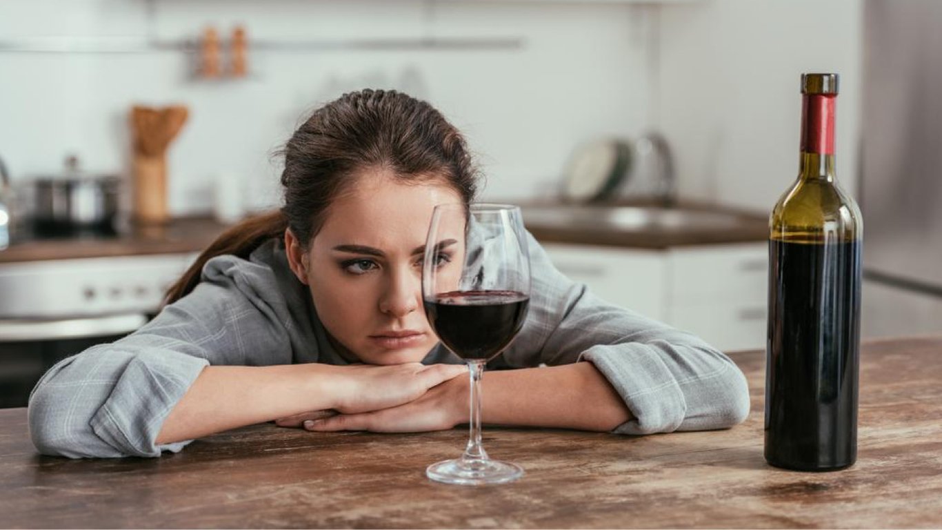 Дівчина дивиться на келих вина. Фото: istockphoto.com