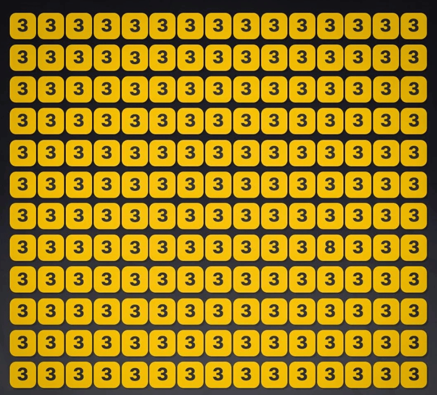 Сделать вам это нужно за короткий промежуток времени, а именно — всего за семь секунд. Если вам кажется, что невозможно найти восьмерку из-за того, что она сливается с тройками на картинке, это не так. Всего лишь попытайтесь тщательно посмотреть на изображение.