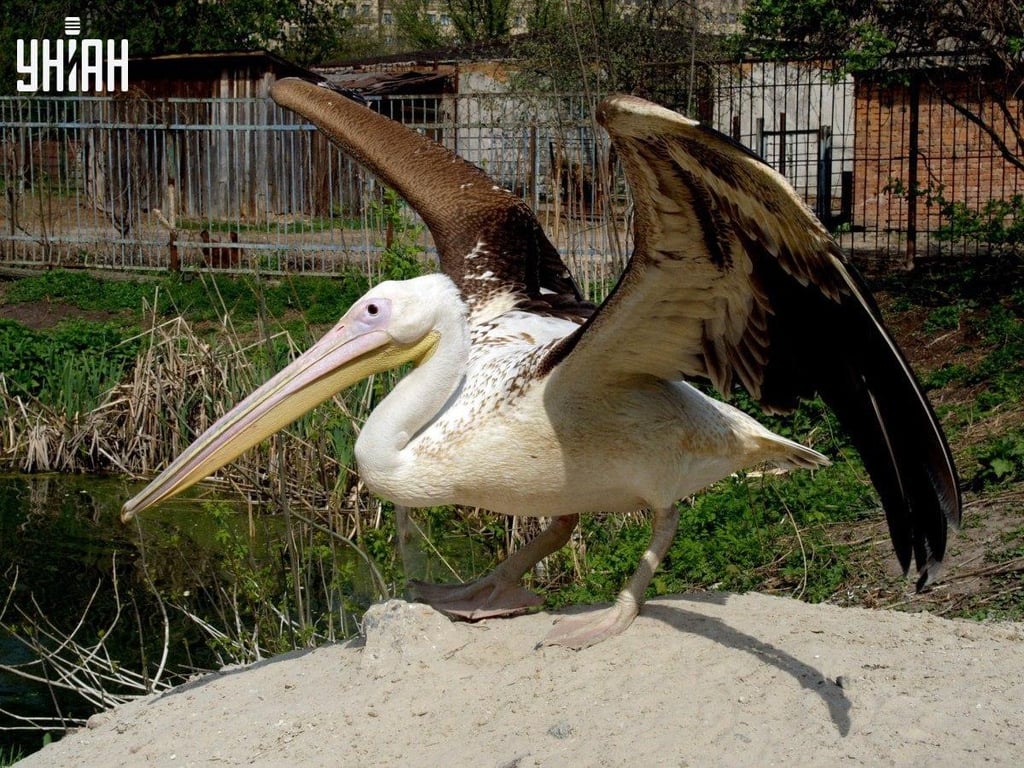Вы видите перед собой обычную фотографию, на которой большой и гордый пеликан расправляет свои крылья. Если вы посмотрите на фон этого снимка, то увидите, что действие, скорее всего, происходит в зоопарке, ведь эта птица находится за ограждением.