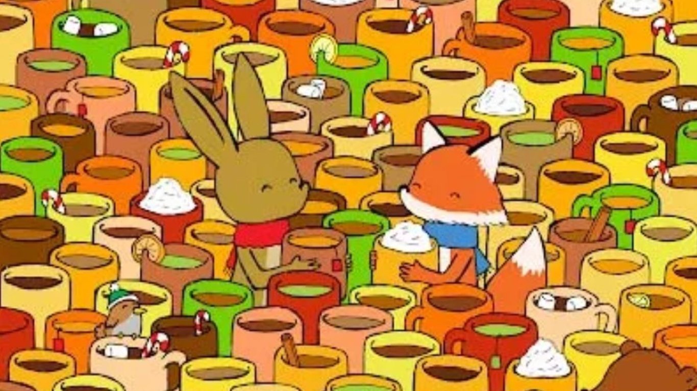 На рисунке изображено множество чашек с ароматными напитками. Каждый может заметить в них палочки корицы, но найдете ли вы единственную пустую чашку за 20 секунд.