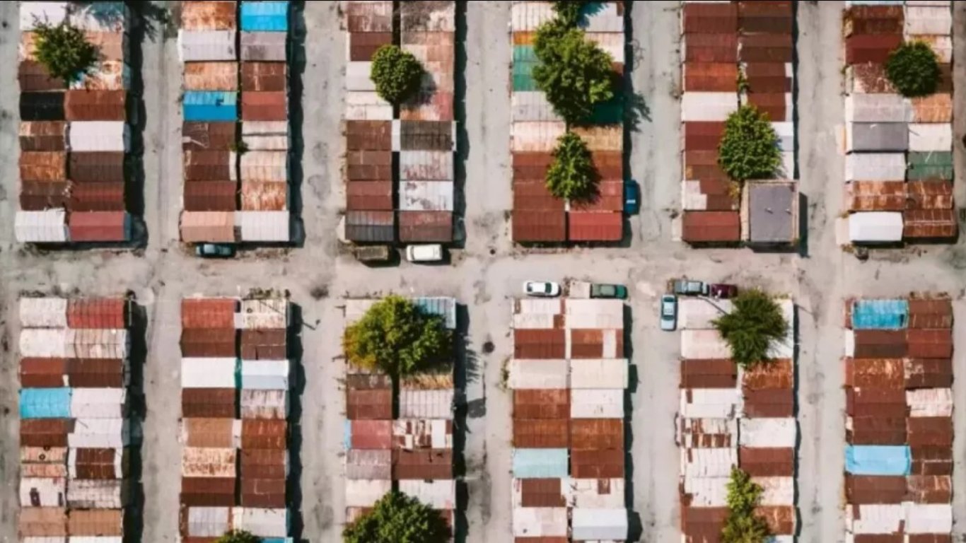 Невероятно хитрая оптическая иллюзия на основе аэрофотосъемки. Среди гаражей отчетливо видны несколько автомобилей, но задача состоит в том, чтобы найти спрятанный велосипед.