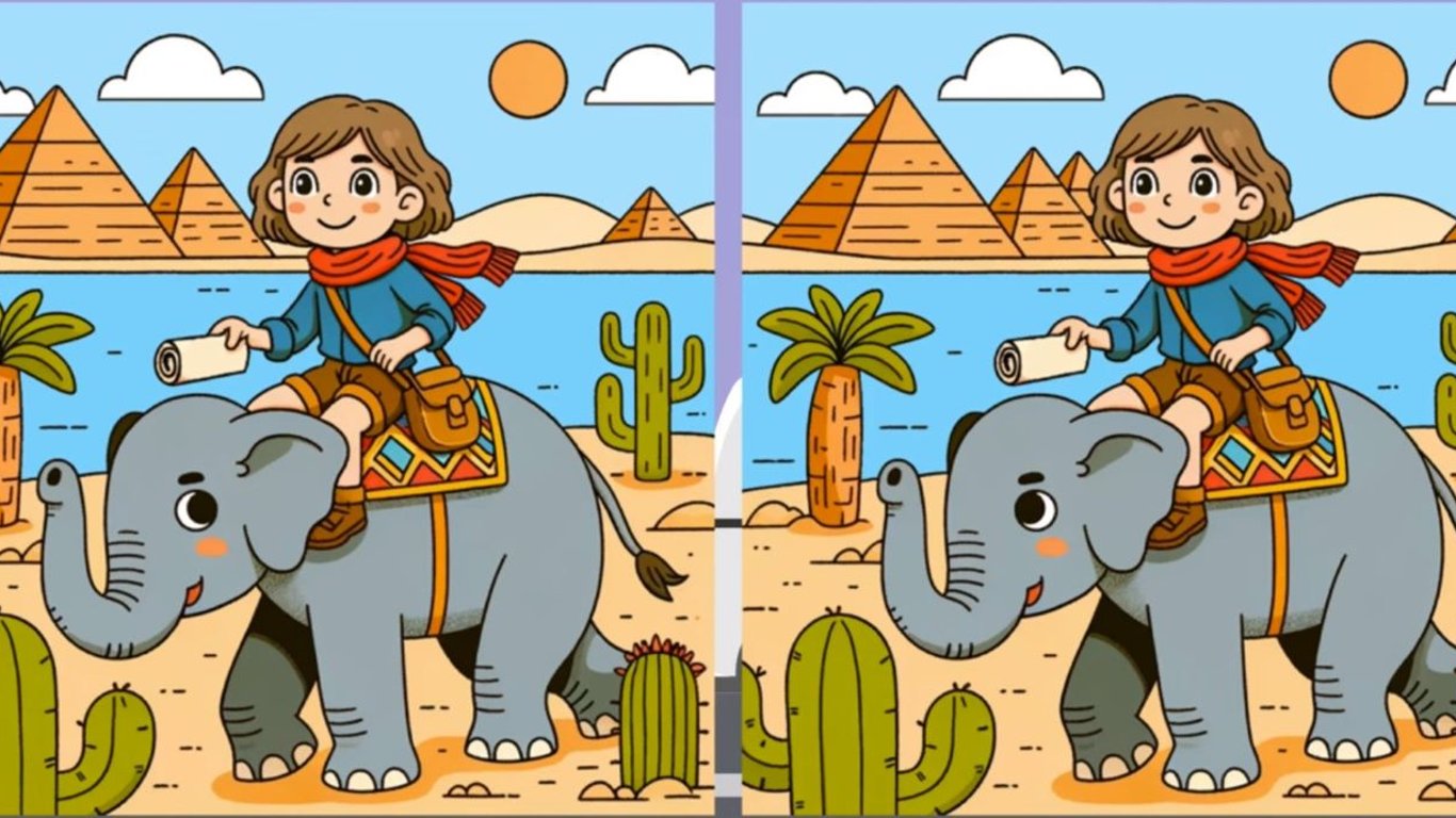 Прогулка верхом на слоне вокруг пирамид фараонов в Египте выглядит довольно странно. Но несмотря на солидные размеры крупного млекопитающего, найти три отличия между рисунками почти невозможно.
