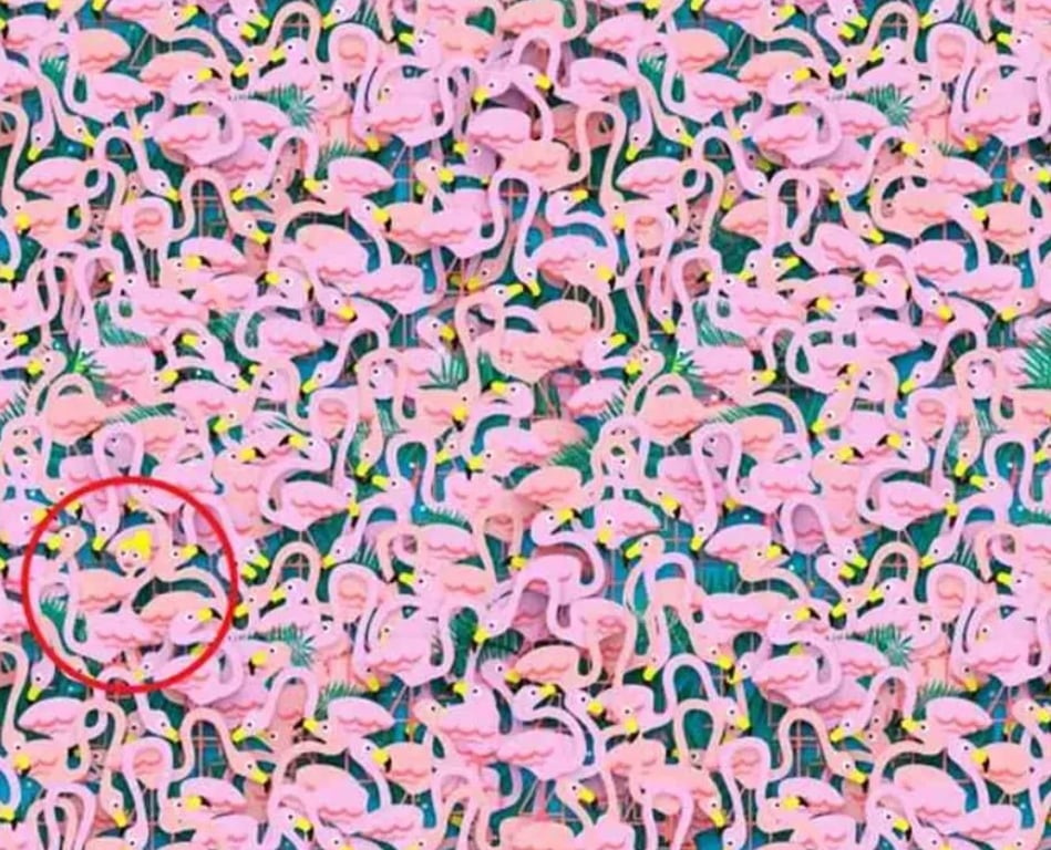Тысячи взрослых, попробовавших эту оптическую иллюзию, не смогли выполнить задание и за 10 минут. Ведь цвет платья девушки совпадает с цветом тел фламинго, а ее волосы — с цветом клювов птиц.