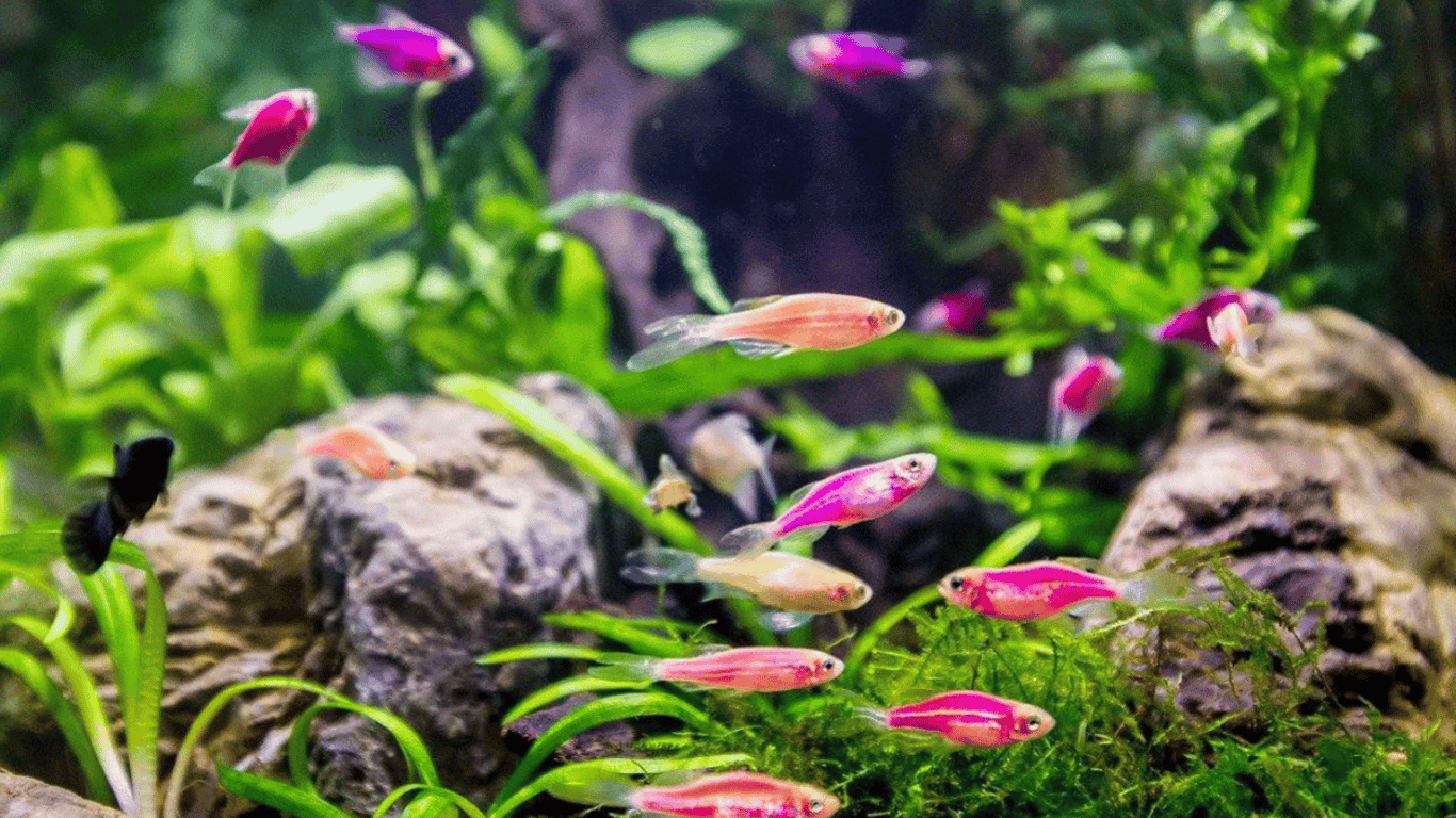 Перед вами представлена фотография, на которой есть большое количество рыбок в аквариуме. Но на ней вам стоит найти не рыбок, а скрывшуюся среди них маленькую черепаху. Но будьте внимательны, ведь это маленькое животное может слиться с чем-то, что расположено рядом с ним.