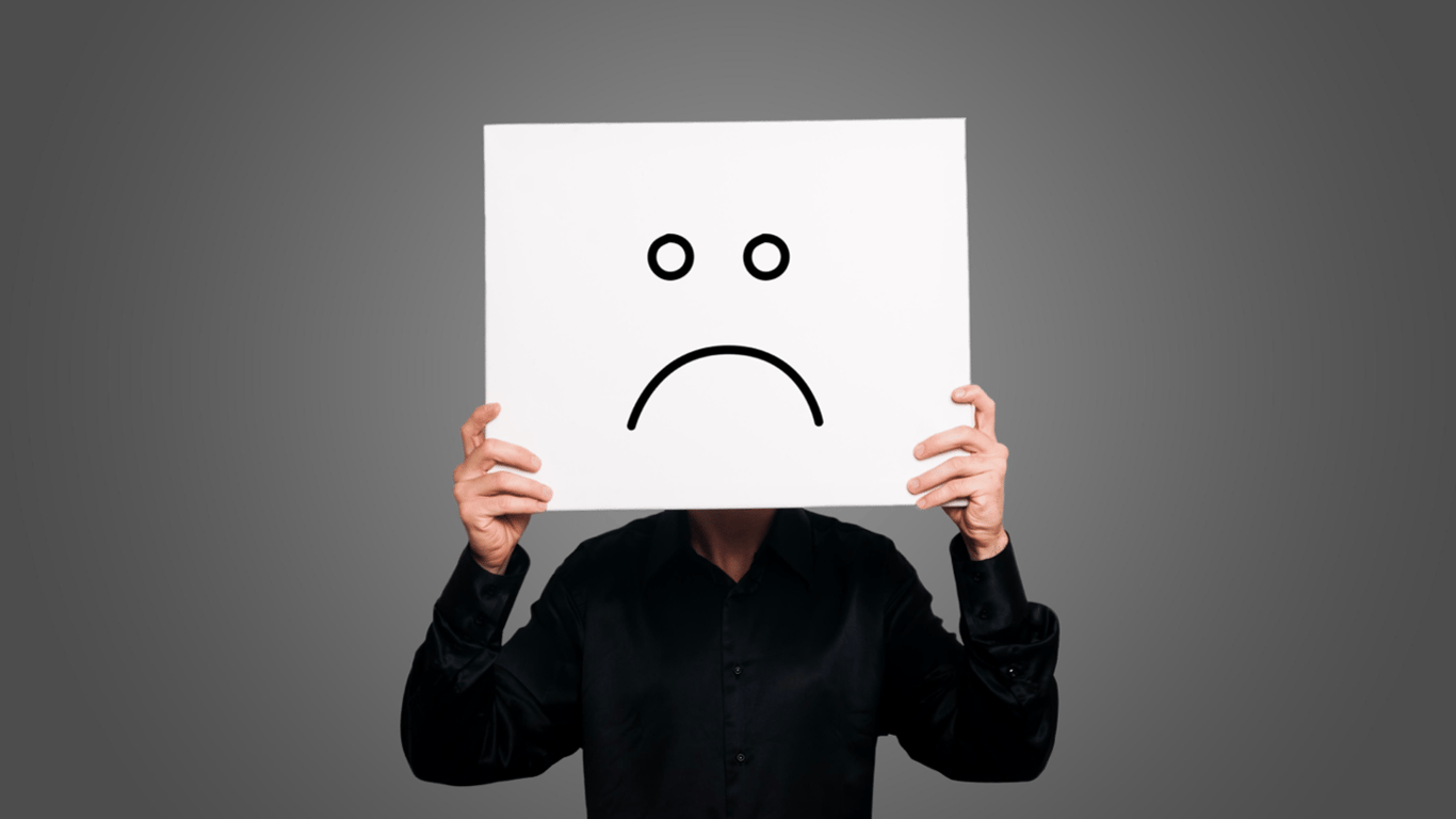Чоловік, який тримає намальоване сумне обличчя. Фото: Pinterest