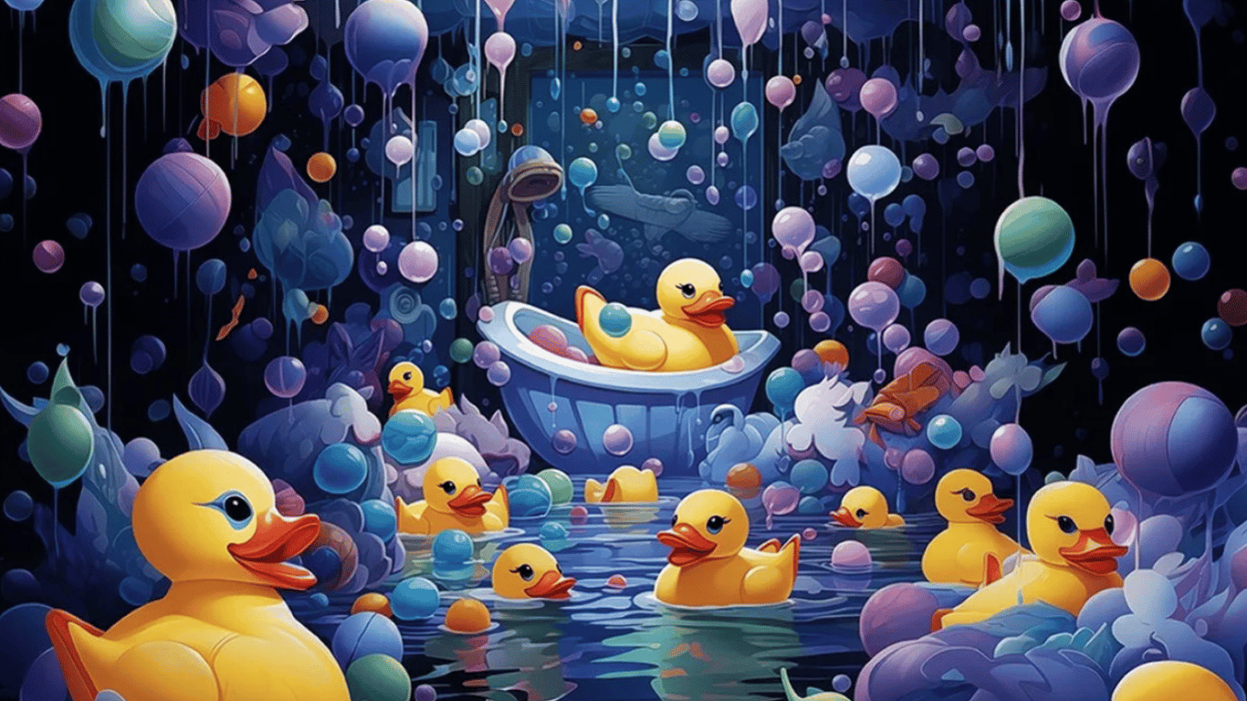 Перед вами є одна яскрава картинка, на якій зображена велика кількість різних предметів. На картинці ви можете побачити багато гумових качок жовтого кольору і велику кількість кульок різної форми і кольору. Дивлячись на цю фотографію, виникає бажання залізти до ванної і так само провести час, як ці качки.